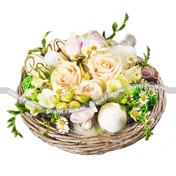 Пасхальное гнездо – композиция из роз и яиц