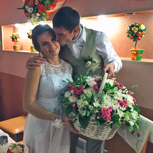 Заказывали корзину на свадьбу в другой город. Спасибо, что выполнили композицию красиво и доставили оперативно. Очень довольны!Успехов и процветания Вам!