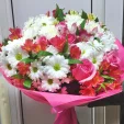 Заказывала букет в вариации "Стандартный" . Букет не огромный, но очень хорошо смотрится, свежие цветы, доставили в указанный срок. Доставка и качество на 5+