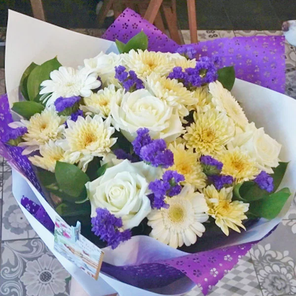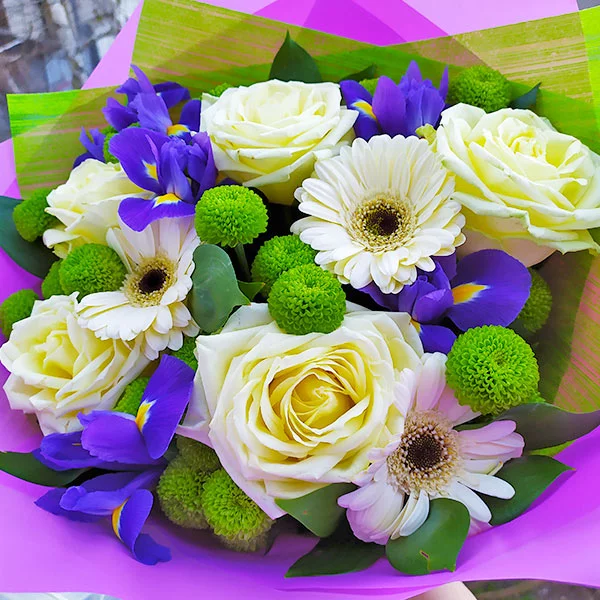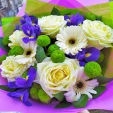Цветы в букете были свежие ,красиво и аккуратно все упаковано. Доставка была вовремя. Курьер очень приятный. Все отлично, претензий никаких нет, только восторг и благодарность.