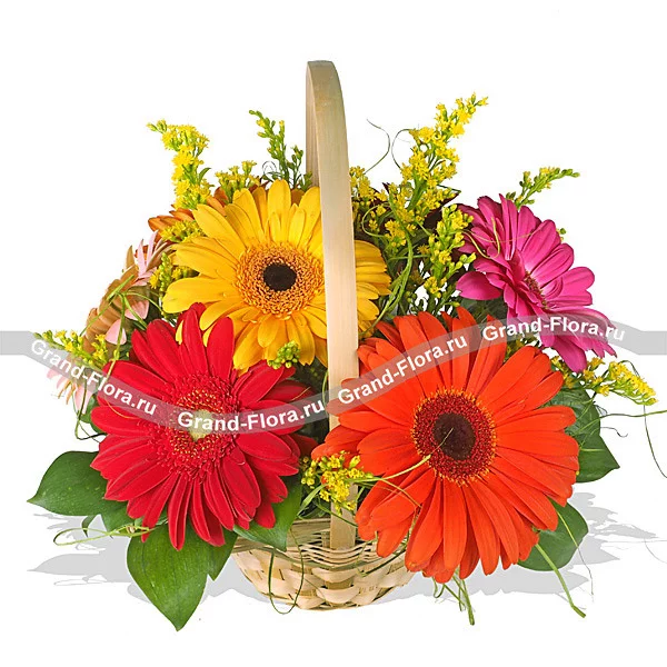 Лепестки лета - корзинка из гербер и солидаго