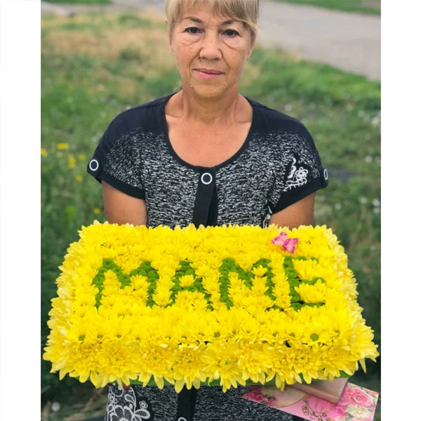 Маме – mini-композиция на оазисе из кустовой хризантемы