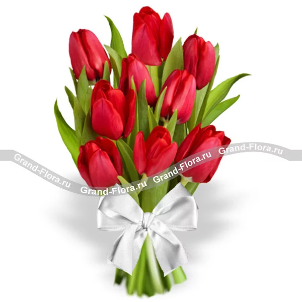 9 тюльпанов: тюльпаны красные - 9 шт., бант белый.