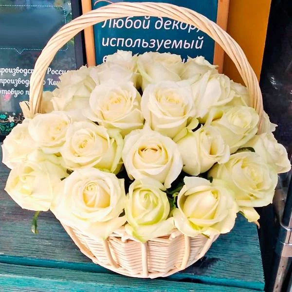25 белых роз в корзине - Снежная королева