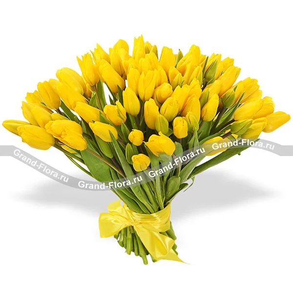 Тюльпан – это нежный и хрупкий цветок, который способен покорить своей красотой даже самое неприступное и ледяное сердце. А огромный букет желтых тюльпанов может стать для вас началом примирения с любимой девушкой или зажжет страсть в глазах сотрудницы, которая вам давно симпатична.rnНе стоит думать, что желтые тюльпаны являются предвестниками чего-то плохого, ведь эти солнечные бутоны могут поднять настроение и внести позитив в серые холодные будни. Но только при условии, что вы закажите букет из тюльпанов с доставкой уже сегодня.rnЗаказывая цветы в службе доставки цветов Grand-flora, вы можете быть уверены, что ваш любимый человек получит самые свежие и ароматные бутоны.