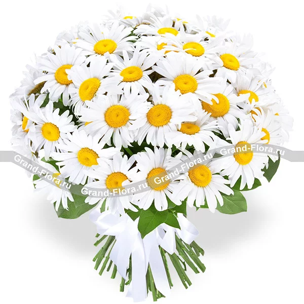 Уточняйте наличие ромашек у оператора перед покупкой. В случае отсутствия предварительного запроса возможна замена на ромашковидную хризантему и/или мартикарию!