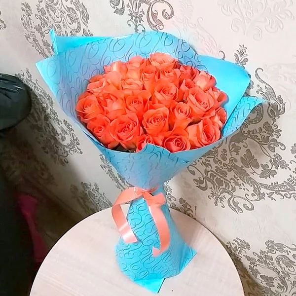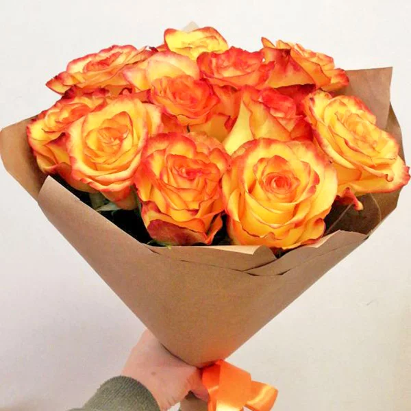 Внимание: сорт роз может отличаться от сорта на картинке, оттенок допустим от ярко-оранжевого (сорт Нина) до светло-оранжево-желтого