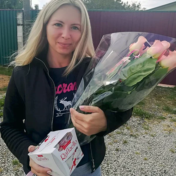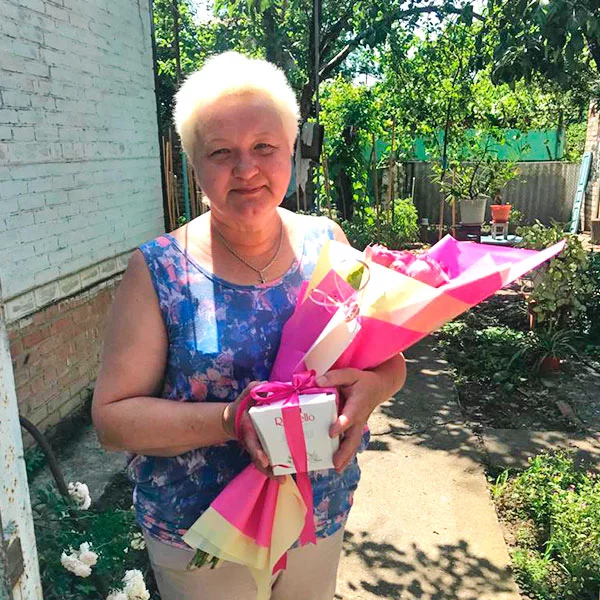 Галина / г. Нахабино / 30.09.2022Оценка букета:Хочу поделиться моим опытом по покупке цветов в этом магазине. Самое важное, что сделали фото цветов и отправили мне на электронную почту. Цветы свежие, большой бокал, очень рада, что у вас правдивый магазин, я имею ввиду, реальность соответствует картинке ))). Цветы заказываю редко, в основном сама покупаю в магазине, но тут нужна была доставка в другой город давней подруге, вы меня не подвели. Спасибо.