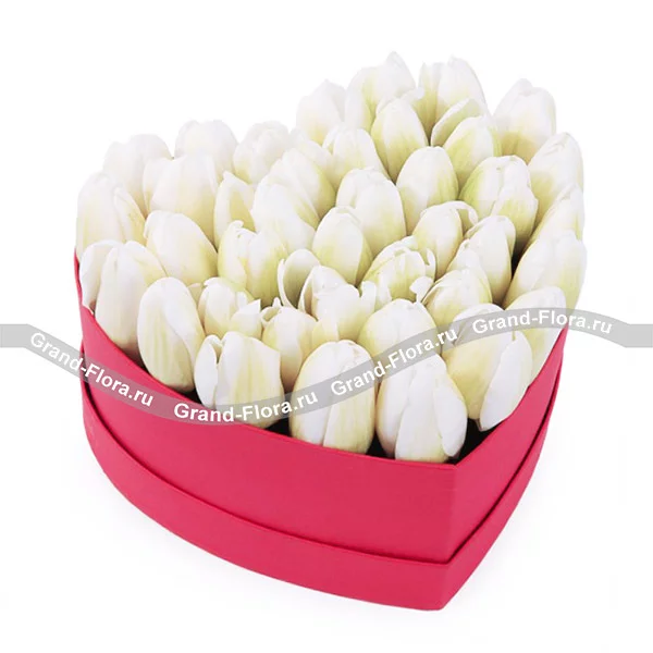 тюльпаны белые - 45 шт., оазис, коробка сердце.