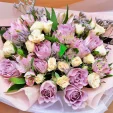 Алла / г. Борисоглебск / 13.05.2021Оценка букета:в букете заменили фиолетовые розы на нежно розовые, но он все равно получился нежным и красивым! спасибо!