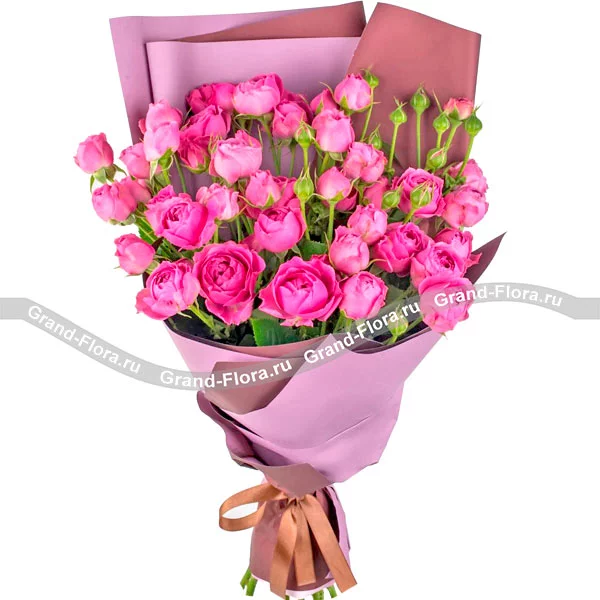 Моно-букет из кустовых роз станет прекрасным подарком как по случаю торжества, так и в качестве приятного сюрприза  без особого повода.