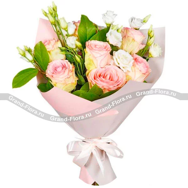 Романтичная роза - букет с розовой розой с эустомой