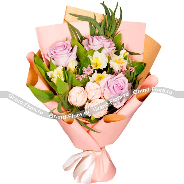 Тропический персик - букет альстромерий и роз