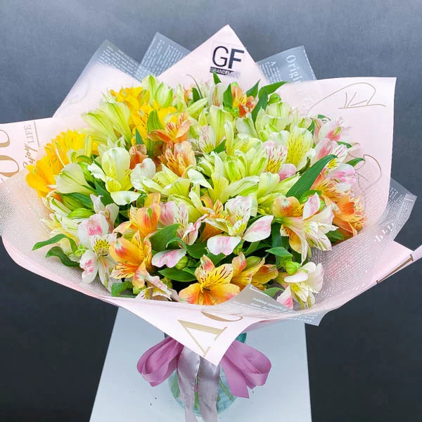 Когда я увидела ассортимент альстромерий на вашем сайте, мне было сложно остановиться на одном варианте. В итоге выбрала этот разноцветный букет, и он превзошел все мои ожидания! Цветы были такие яркие и нежные, что невозможно было удержаться от улыбки. Благодарю за вашу работу и внимание к деталям!