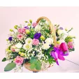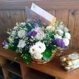 Очень красивая корзиночка. Мы с мамой обожаем эустому, чудесные цветочки. Очень благодарны флористам за прекрасно собранную композицию!